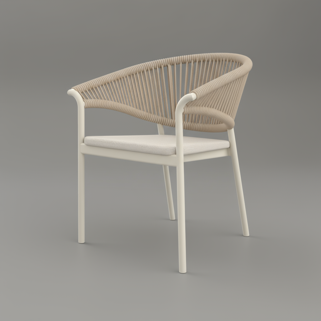 CELINE DINING CHAIR POWDER COATED ALUMINIUM FRAME,CUSHION BEIGE WITH NATURAL ROPE COLOR 64X59X79.5CM