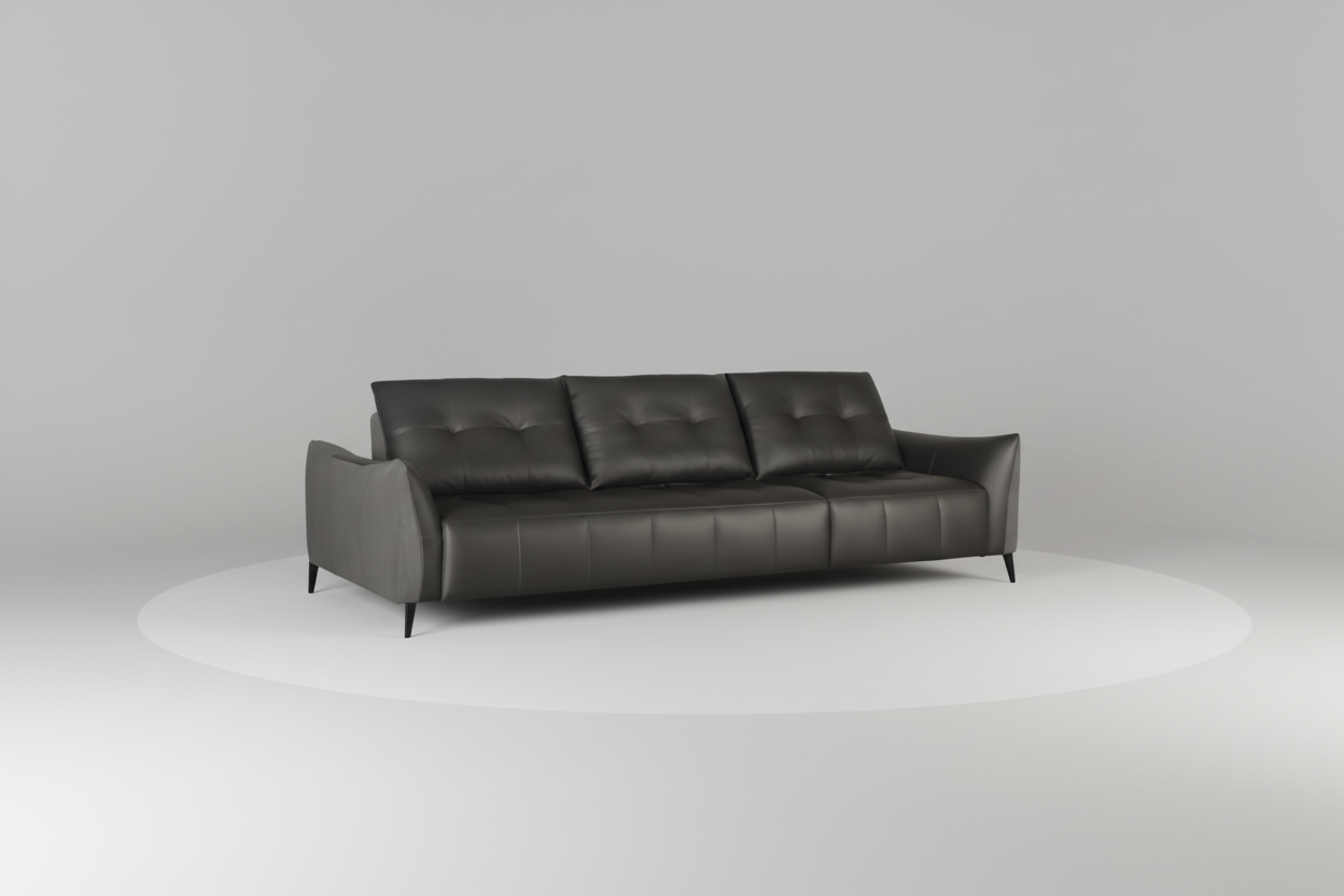 Katty modular sofa 3 seater left arm with two manual backrest leather cat2+cat lusso fabric mix black & grey 185x113x86cm
